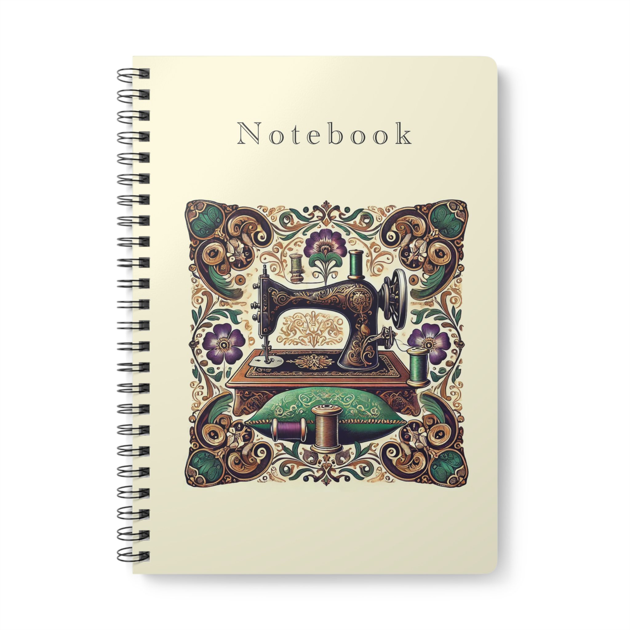 Graceful, intricate, and full of vintage charm, this vintage sewing notebook captures the beauty and artistry of classic craftsmanship. The elegant cover showcases an ornate antique sewing machine surrounded by lush florals, golden scrollwork, and delicate detailing — a design that feels both timeless and inspiring. Ideal for sewists, quilters, and makers who appreciate beauty in every stitch, this notebook turns everyday note-taking into a creative ritual.