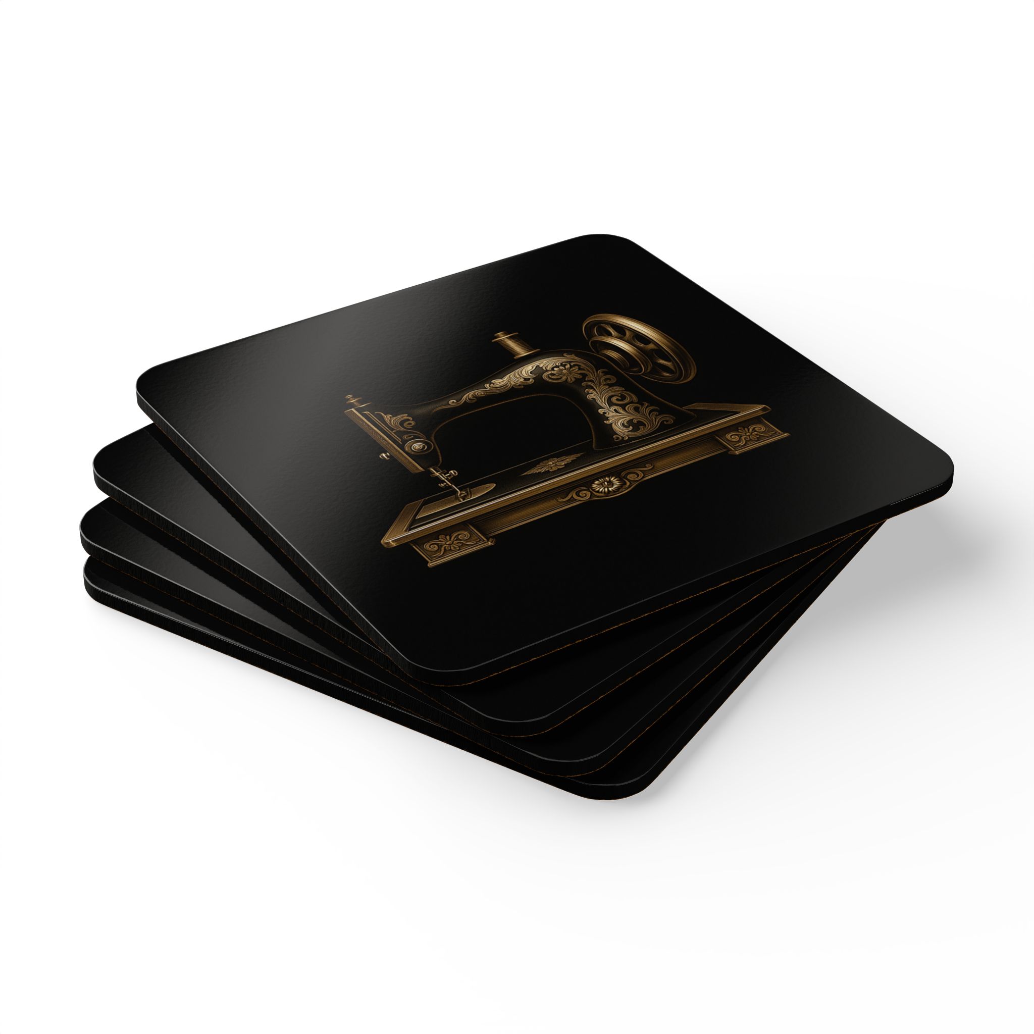 These Sewing Coasters combine bold modern minimalism with timeless sewing-room elegance. Featuring a striking black backdrop and an intricately detailed gold vintage sewing machine, this set of four instantly elevates any craft space, studio, or cosy corner. The high-contrast design makes the artwork pop, while the glossy MDF top preserves every ornate detail. Whether you’re enjoying a warm drink during a late-night quilting session or protecting your favourite sewing desk, these Sewing Coasters deliver both style and function with a premium finish. The cork backing keeps each coaster firmly in place—no slipping, no scratching, just classy practicality.
