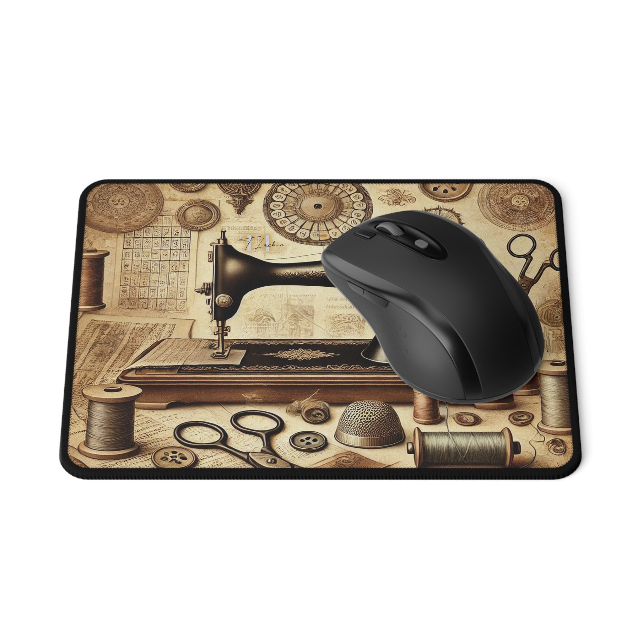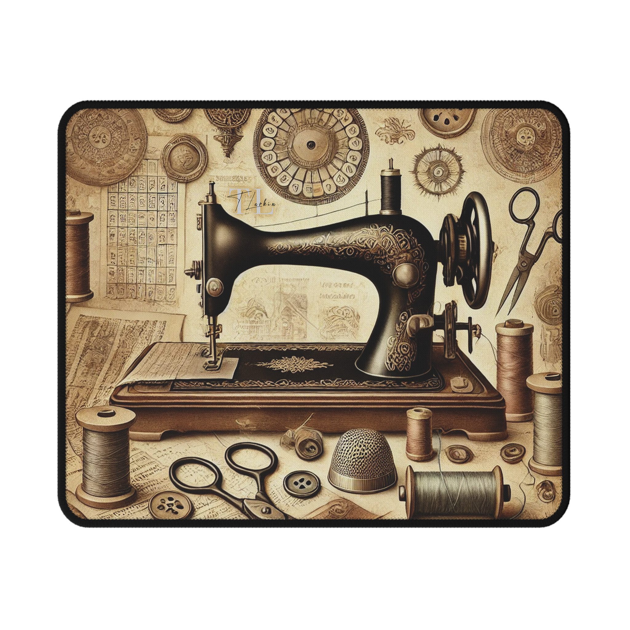 Sewing Mouse Mat – Antique Sewing Machine & Notions Design, Vintage Gift for Quilters & Sewing Lovers