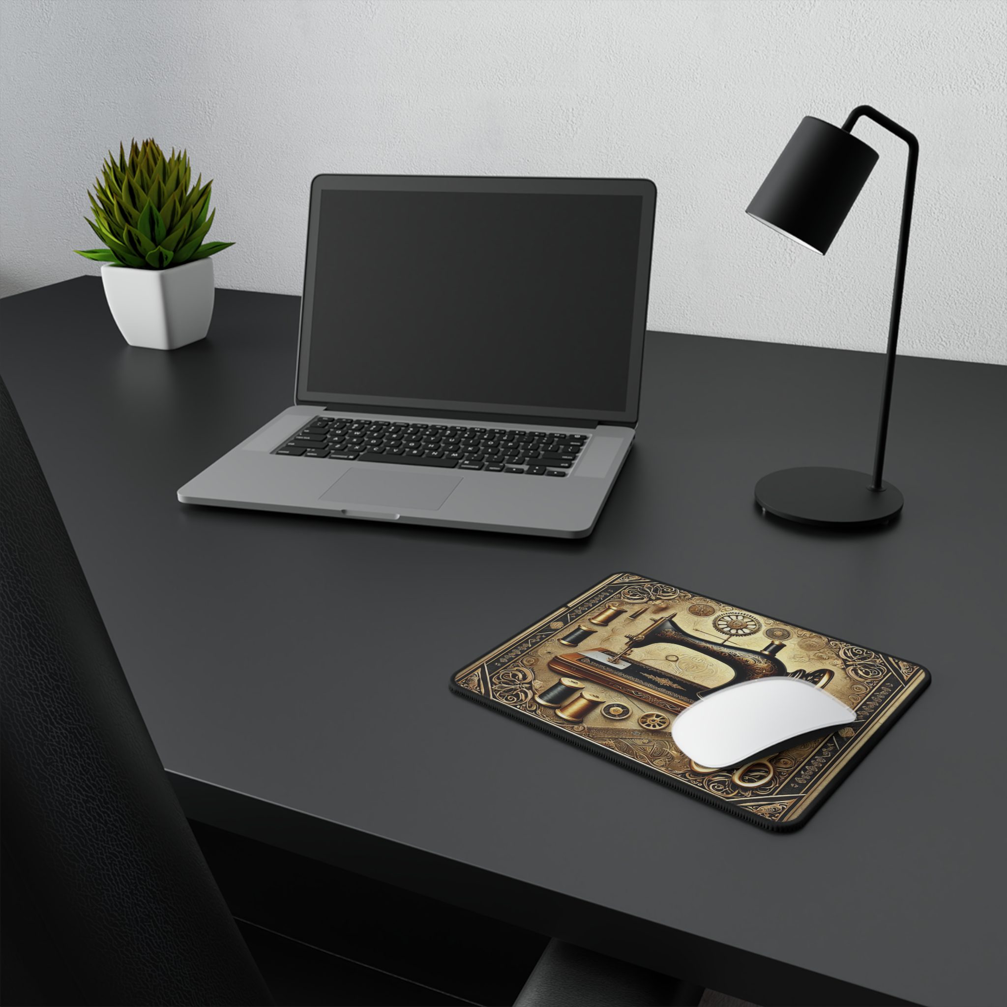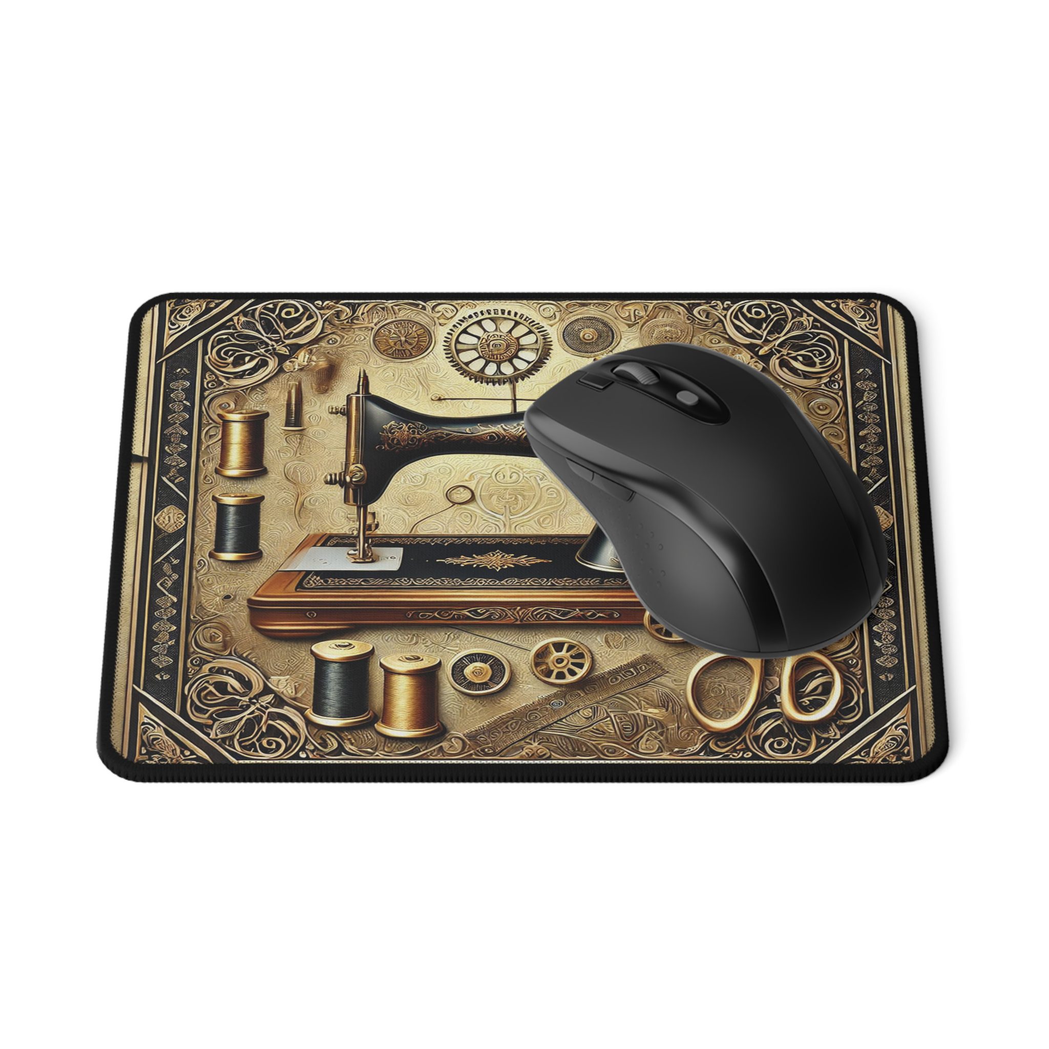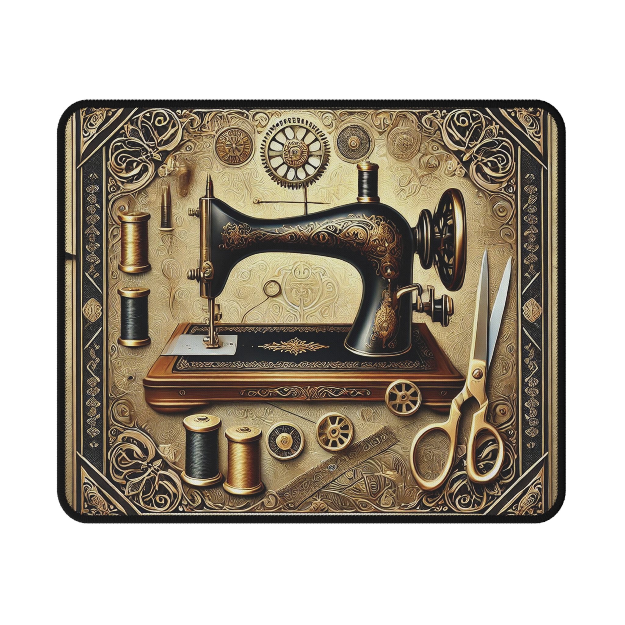 Add a touch of timeless elegance to your creative space with this Sewing Mouse Mat, featuring an ornate vintage sewing machine surrounded by gold spools, scissors, and intricate filigree patterns. The detailed craftsmanship and warm golden tones evoke the grandeur of a bygone era — a tribute to the artistry and precision of traditional sewing.