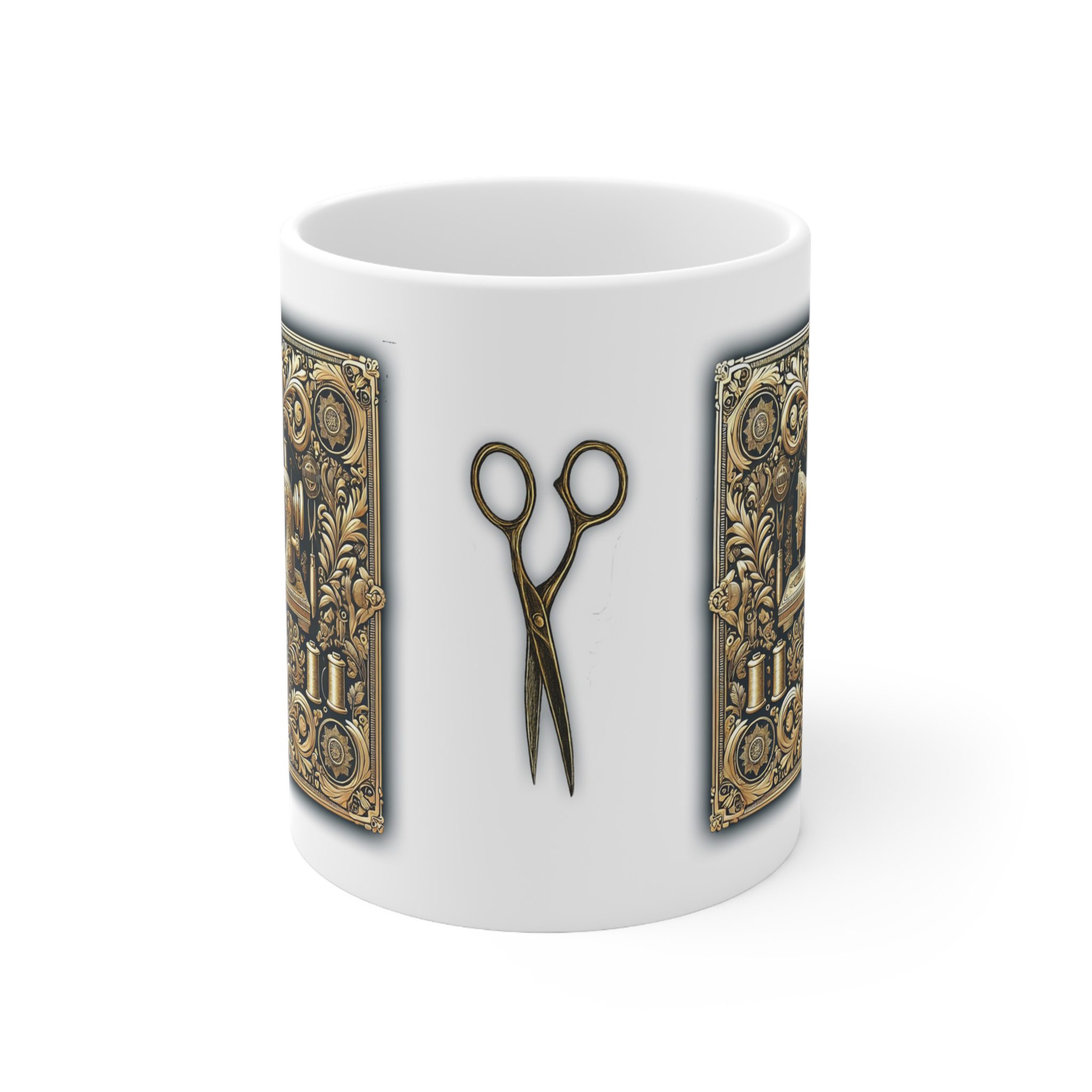 Perfect for quilters, sewists, and anyone who loves the finer details of craftsmanship, this mug turns every sip into a moment of inspiration. The rich golden tones and elegant pattern make it as much a decorative piece as a functional one. Made from durable glossy ceramic, it’s designed for daily use — whether you’re planning your next project or relaxing after a day of stitching.