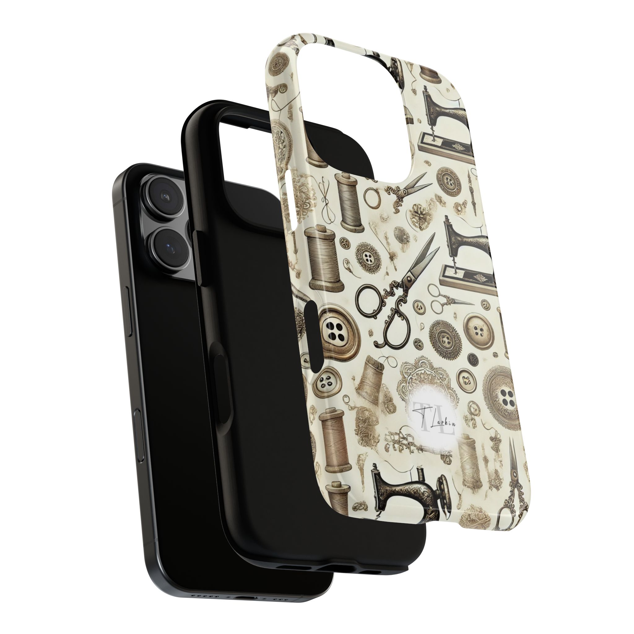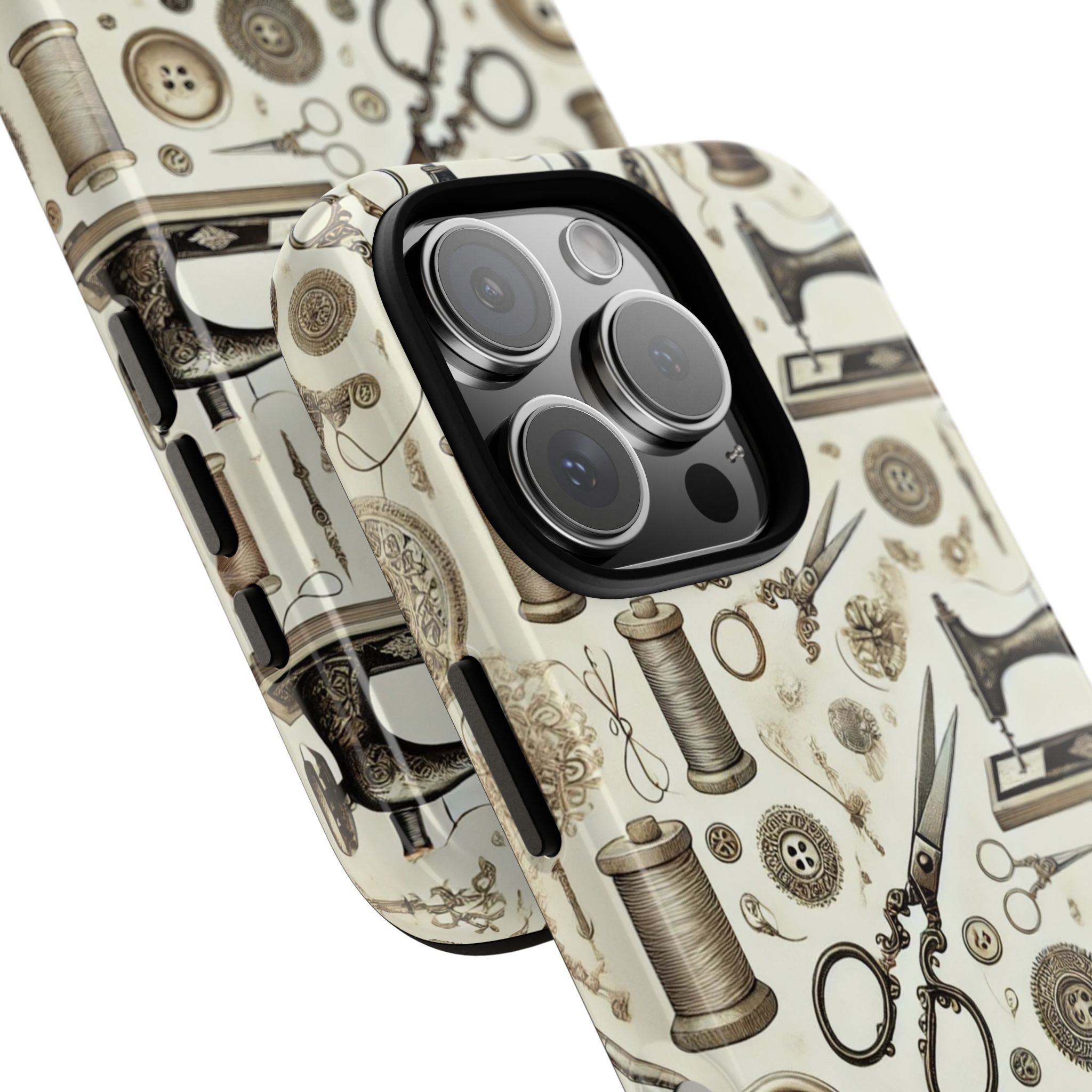Sewing phone case. Timeless craftsmanship meets modern design with this antique sewing machine phone case. Featuring beautifully detailed engravings of classic machines, spools, and scissors in warm sepia tones, it captures the spirit of traditional sewing in an elegant, understated style. Perfect for quilters, makers, and sewing enthusiasts who appreciate heritage design.